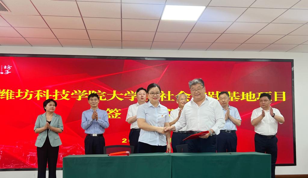 为深化城市社区“三化两增”改革,建强社区骨干队伍,提升社区工作者服务效能,提高城市社区基层治理水平和服务能力,6月5日上午在凤凰街道恒安社区党群服务中心举行潍坊科技学院大学生社会实践基地揭牌仪式暨坊子区社区工作者能力提升培训开班仪式。潍坊市委组织部副部长刘冠迎,山东省领导干部考试题库中心主任韩高文,坊子区委书记、党校校长周洪刚,坊子区委常委、组织部部长赵小燕,凤凰街道党工委书记董云飞,潍坊科技学院党委委员、副校长张友祥,马克思主义学院部分干部、教师等参加此次活动。韩高文同志与张友祥同志为恒安社区大学生社会实践基地揭牌。