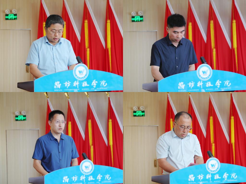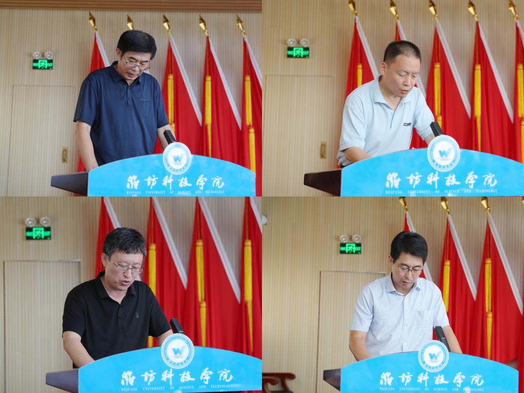 7月11日,我校在办公楼六楼报告厅召开中层干部述职评议会议。潍坊科技学院校长、党委副书记魏华中,学校校级领导班子全体成员,全体副职及以上中层干部,行政处室、创收单位职员和二级教学部门教师代表进行评议并打分。会议由党委委员、纪委书记刘奎然主持。