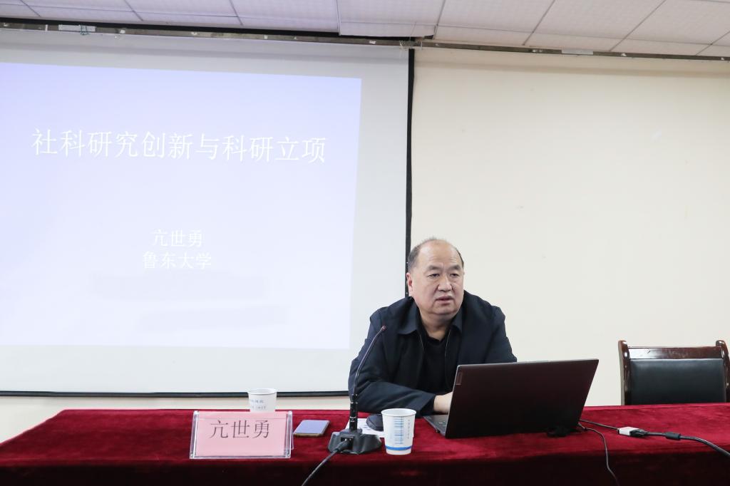 12月2日下午,鲁东大学二级教授亢世勇应邀为我校文科类博士教师作题为《社科研究创新与科研立项》的讲座。讲座由科研处、教师发展中心主办,文学院承办,文学院院长孙淑娟主持。