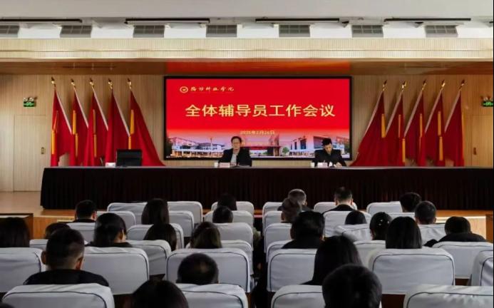 2月26日,我校在办公楼六楼会议室召开2025年全体辅导员工作会议。校党委委员、副校长徐友信出席会议,学工处处长孙宝国主持会议。学工处全体成员、各二级学院书记、副书记及全体辅导员参会。