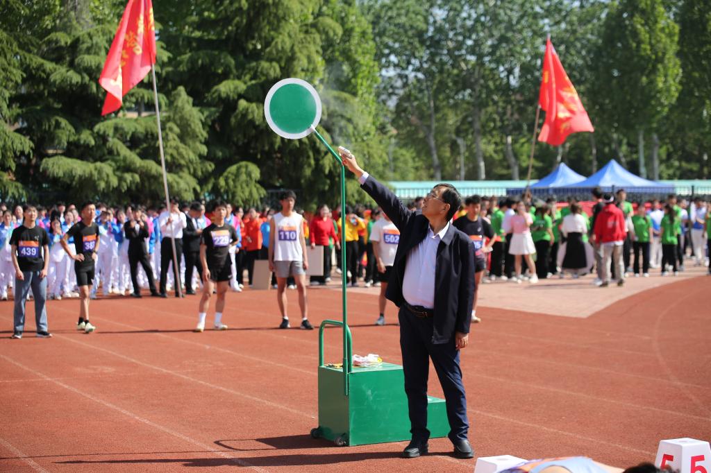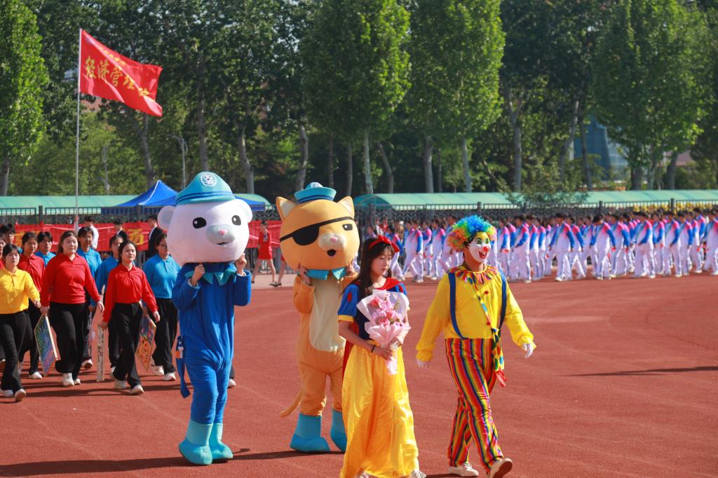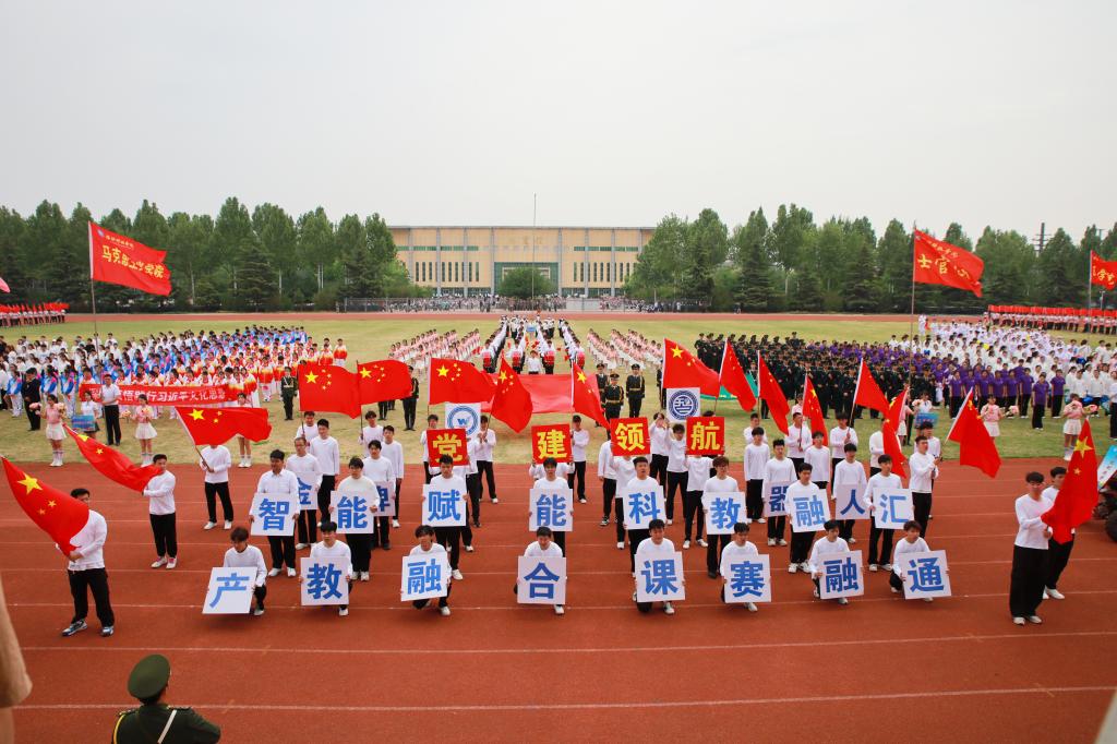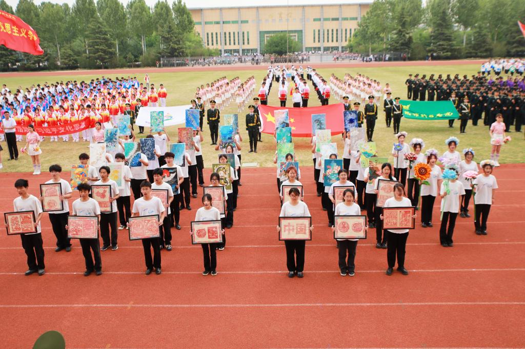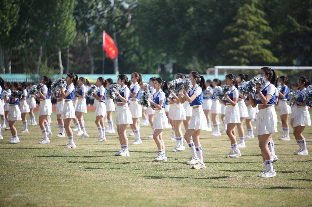 开幕式上还进行了精彩的团体操表演,参演学生统一着装、精神饱满,通过多样化的队形设计与创新编排,展现青春风采,彰显拼搏精神,赢得现场师生、嘉宾的阵阵掌声与喝彩。近年来,学校持续推动群众性体育活动,通过规范体育教学、构建‘课内外一体化’体能提升模式、鼓励师生参与体育竞赛等措施,切实贯彻‘每天锻炼一小时’健康理念,取得了显著成效。