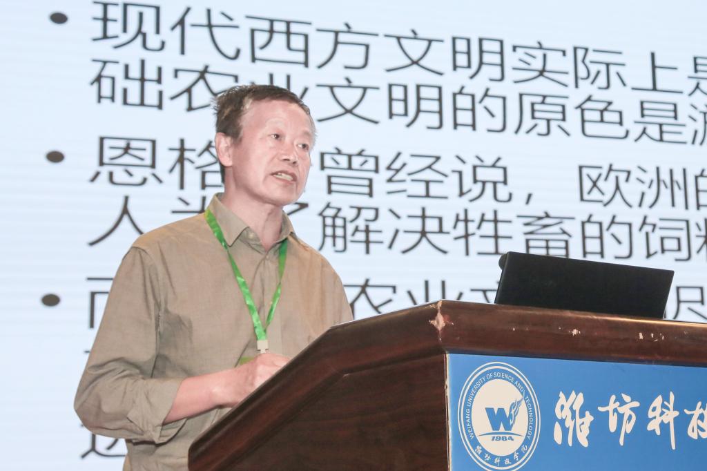 中国农业博物馆研究员、第二届全球重要农业文化遗产专家委员会委员徐旺生作《农耕与游牧——两种文化类型对比下的齐民要术学科建设思考》报告,指出中西方文明的区别根本上是农耕文明与游牧文明的区别,可持续的农业是未来的目标,要构建和谐农耕文明体系,使农业以至社会向着可持续的方向发展。