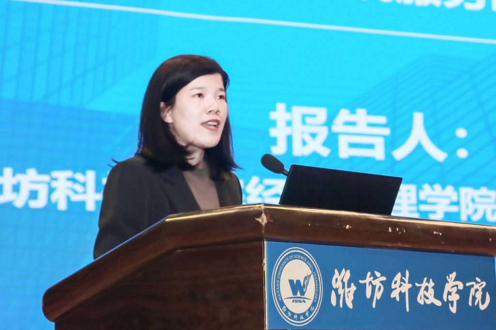 潍坊科技学院经济管理学院院长、教授、硕士生导师丁莹莹作《扎根地方办大学 构建校地共生新格局——潍坊科技学院服务区域发展的实践探索》报告,分享了参与乡村振兴的典型实践和成效,提出要夯实数字农业发展基础,加快培育形成农业新质生产力。