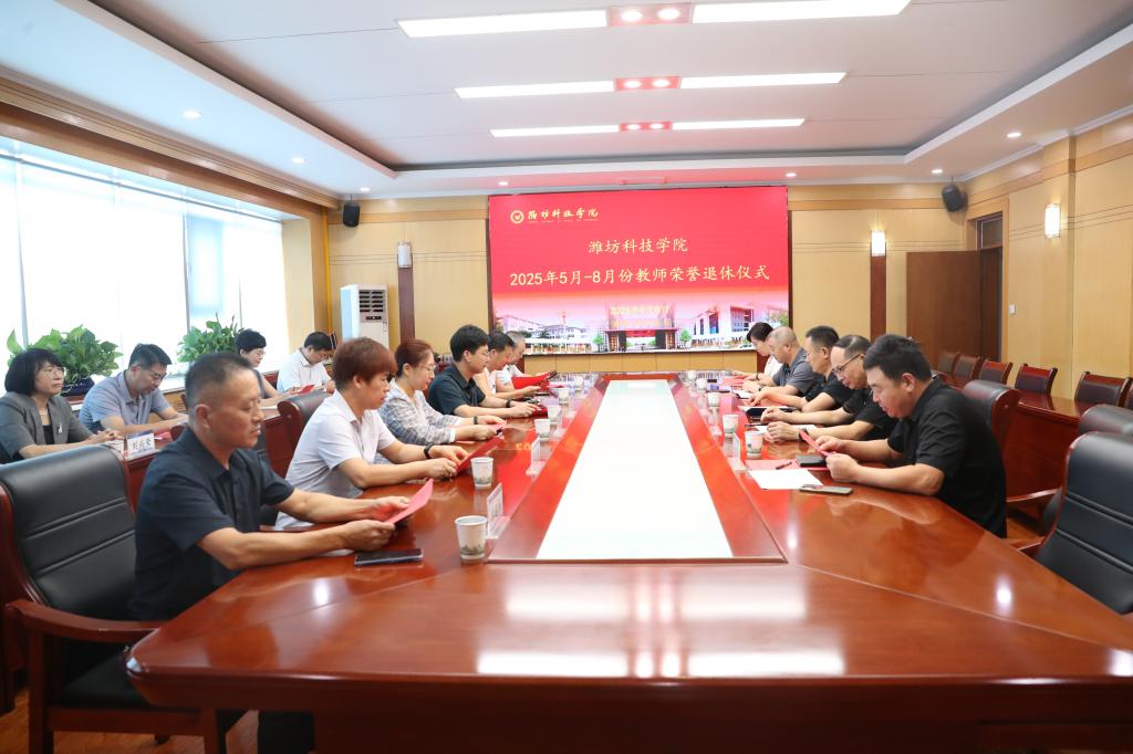 在第41个教师节来临之际,潍坊科技学院于9月8日在第一会议室隆重举行2025年5月至8月退休教师荣誉退休仪式。校务委员、工会主席杨洛滨,组织人事处、工会办公室、党建办公室负责人,退休教师及其原所在部门负责人共同参加。