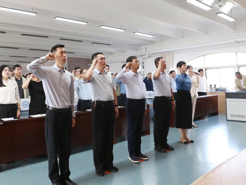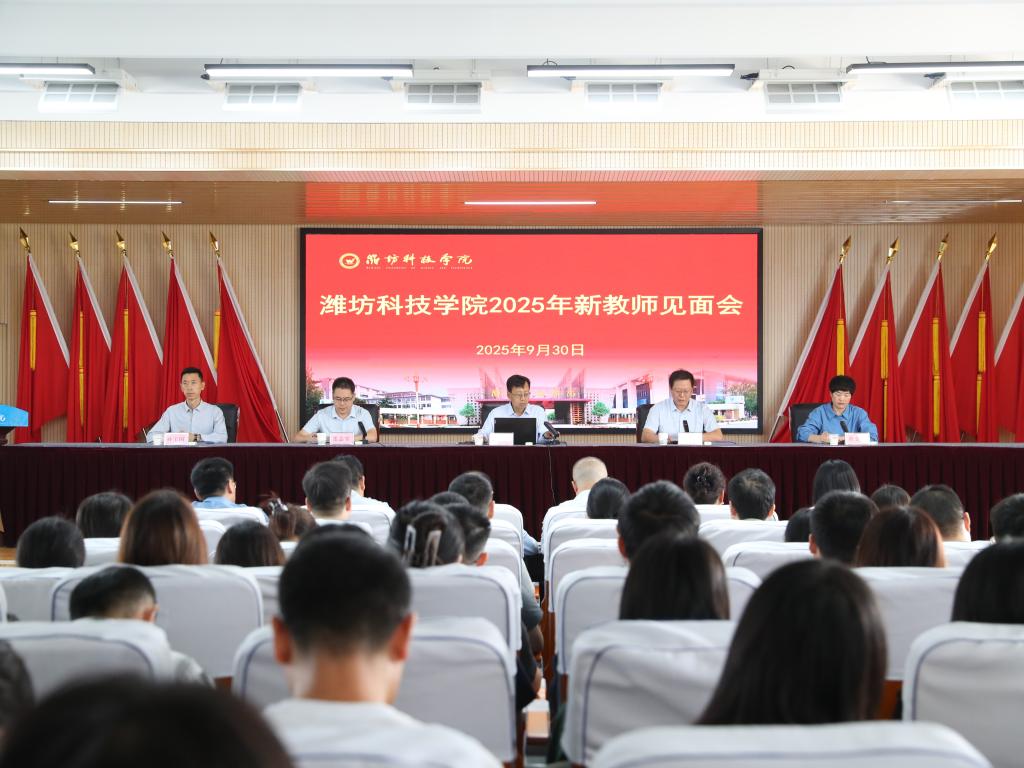 9月30日上午,潍坊科技学院2025年新教师见面会在办公楼六楼会议室举行。校长、党委副书记魏华中,党委委员、副校长徐友信,党委委员、纪委书记张志军,党委委员、教务处处长董金萍,党委委员、学工处处长孙宝国及相关处室部门负责人,各二级学院院长、书记以及2025年新入职的全体教师参加仪式。