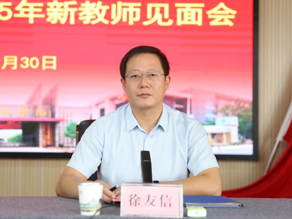 会议由徐友信副校长主持,他指出,新教师的加入为学校师资队伍增添了新生力量和活力,每位教师要把教育当做终生事业来做,要立足本职,勤奋工作,与时俱进,努力成为一名有理想信念、有道德情操、有扎实学识、有仁爱之心的优秀人民教师。