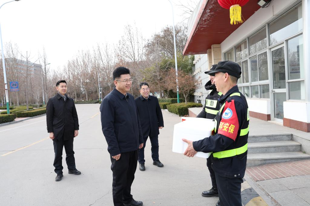 付乐启一行先后走访了学校南门、北门、换热站、中专部南门等地。每到一处,都与在岗人员亲切交谈,详细了解春节期间值班安排及服务保障工作情况,认真倾听大家的意见建议与实际需求,向全体一线工作人员的坚守与付出表示感谢,并送上了新春慰问品。他叮嘱大家在做好服务保障的同时,注意防寒保暖,合理安排作息,确保身体健康与工作安全。