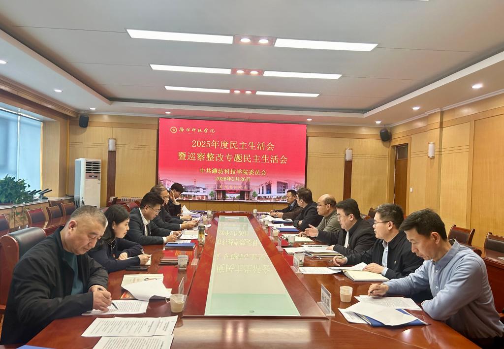 根据中共潍坊市纪委机关、中共潍坊市委组织部、中共潍坊市委教育工委相关通知精神和寿光市委巡察工作要求,2月26日下午,潍坊科技学院党委召开2025年度民主生活会暨巡察整改专题民主生活会。学校党委领导班子成员参加会议,非中共党员的班子成员列席会议,党委书记王洪禹主持会议,寿光市纪委监委第九纪检监察室副主任王田园列席指导。