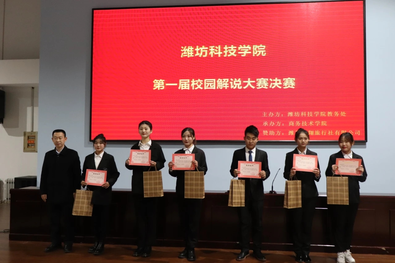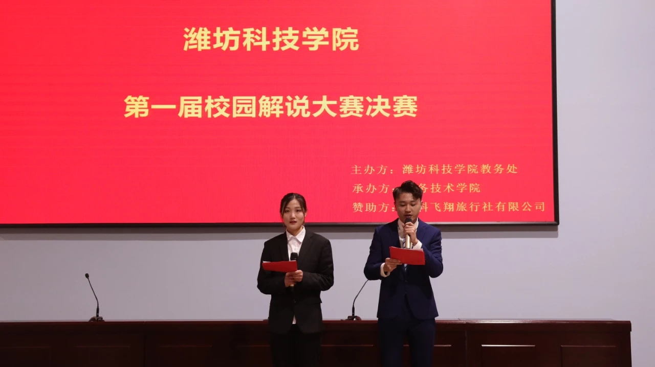 12月24日下午,潍坊科技学院第一届校园解说大赛决赛在经管报告厅举行,活动由教务处主办、商务技术学院承办,并得到潍科飞翔旅行社的支持与赞助。