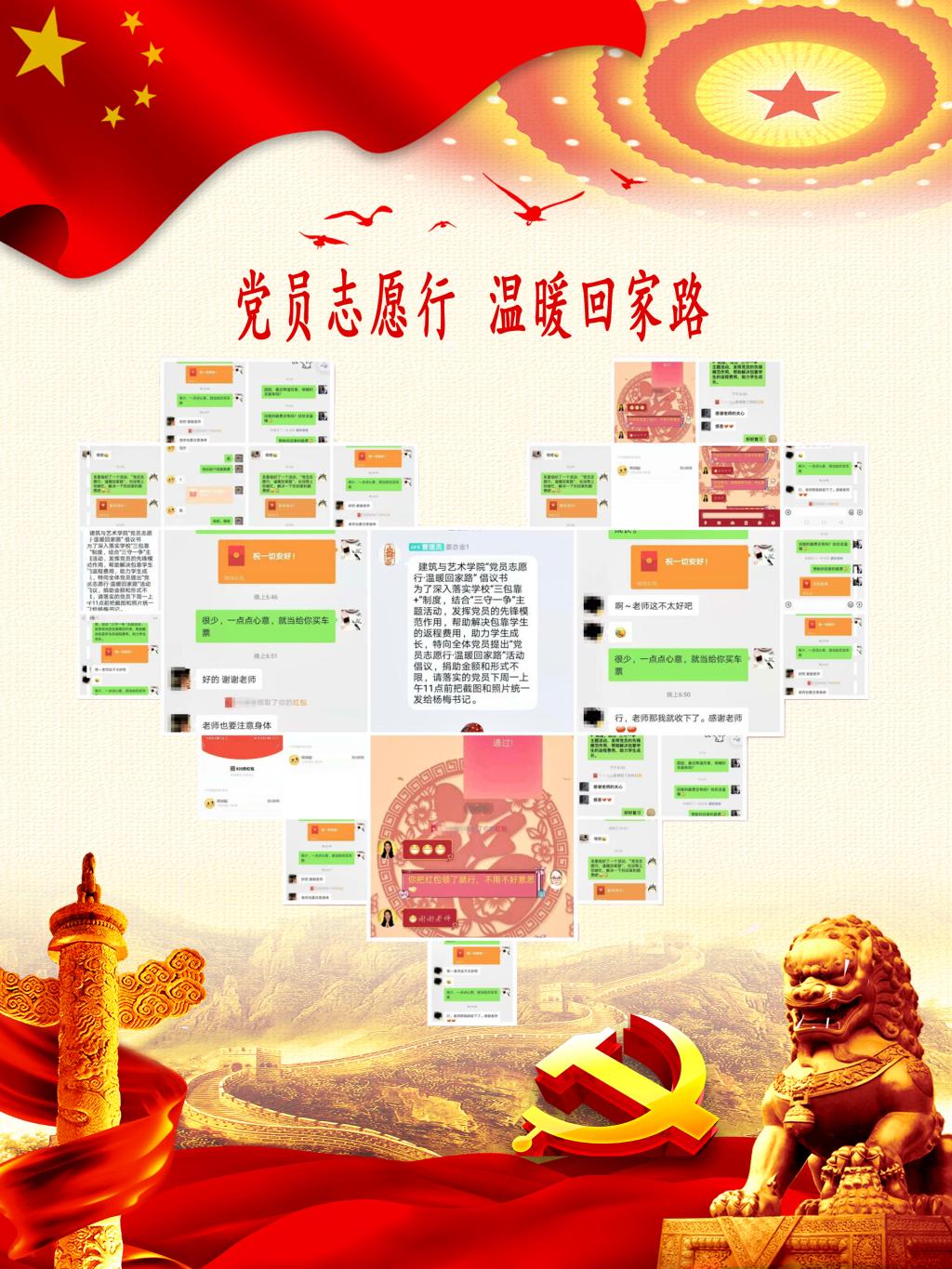 为贯彻省教育厅关于帮助建档立卡贫困家庭学生温暖安全过冬的通知要求,深入落实学校“三包靠+”制度,结合“三守一争”主题活动,发挥党员先锋模范作用,帮助解决包靠学生返程费用问题,建筑与艺术学院党支部向全体党员提出“党员志愿行·温暖回家路”活动倡议。