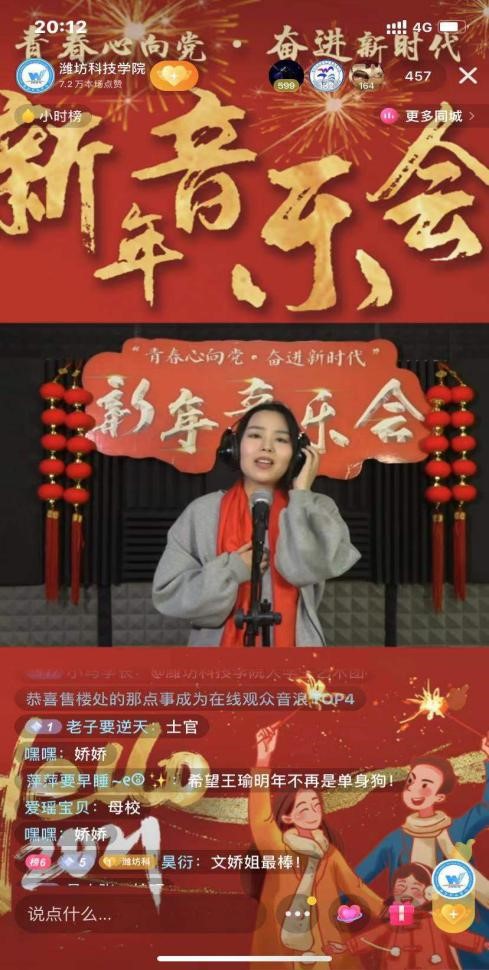 12月31日晚,由校团委举办的潍坊科技学院“青春心向党,奋进新时代”2021新年音乐会通过官方抖音进行直播,一首首遏云绕梁的歌声,为新的一年传递最真挚美好的祝福。