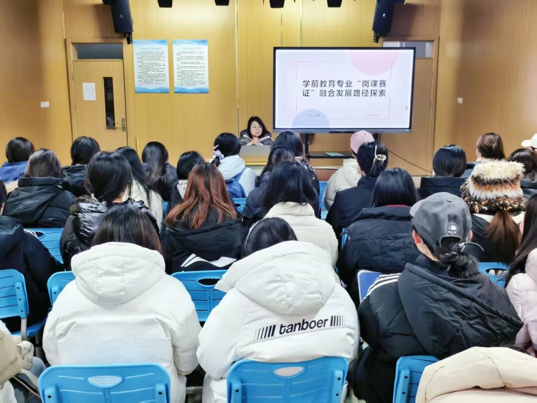 为深化应用型人才培养路径,提高学生的综合素质能力,近日,教育学院举办“融岗课赛证、学前育匠心”专题讲座,特邀教育学博士、副教授、学前教育专家白蕾担任主讲,围绕“岗课赛证”融合育人路径,为学前教育专业学生解析职业发展方向。
