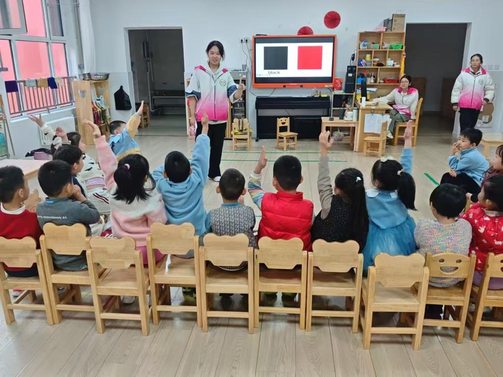 在课程设计与教学组织上,服务队注重内容衔接与形式创新。每期活动围绕一个核心主题展开教学,如“文具英语趣启蒙”通过实物互动认识学习用品,“美食单词启蒙”在模拟情境中掌握食物词汇,“家庭成员英语”借助角色扮演加深理解。各主题之间既相对独立,又相互关联,逐步拓展幼儿的词汇网络与认知范畴。志愿者们精心设计教学环节,将语言学习自然融入歌曲、手工、情景模拟与游戏活动中,例如在“动物英语”课堂上模仿动物叫声与动作,在“颜色认知”环节开展色彩分类游戏,在“交通工具”主题中模拟出行场景对话,使孩子们在参与中主动表达、在游戏中自然习得。