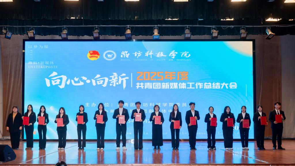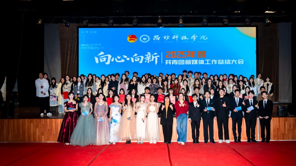 守正创新聚合力,青春逐梦启新程。12月26日,潍坊科技学院2025年度共青团新媒体工作总结大会圆满举行。大会聚焦“向心·向新”的主题,以“光影传情聚力同行、声影逐梦青春绽放、初心赓续共启新程”为篇章,500余名学校共青团新媒体工作者齐聚一堂,全面总结年度工作成效,表彰先进典型,凝聚奋进力量,推动学校共青团新媒体工作高质量发展。