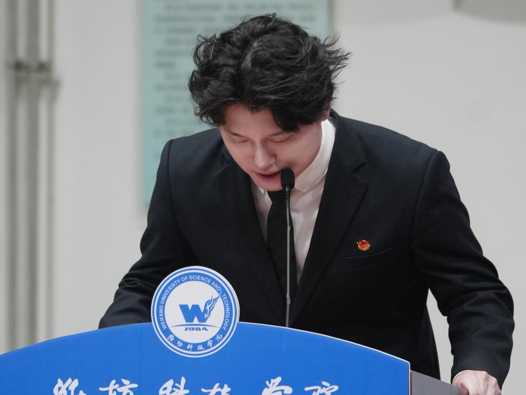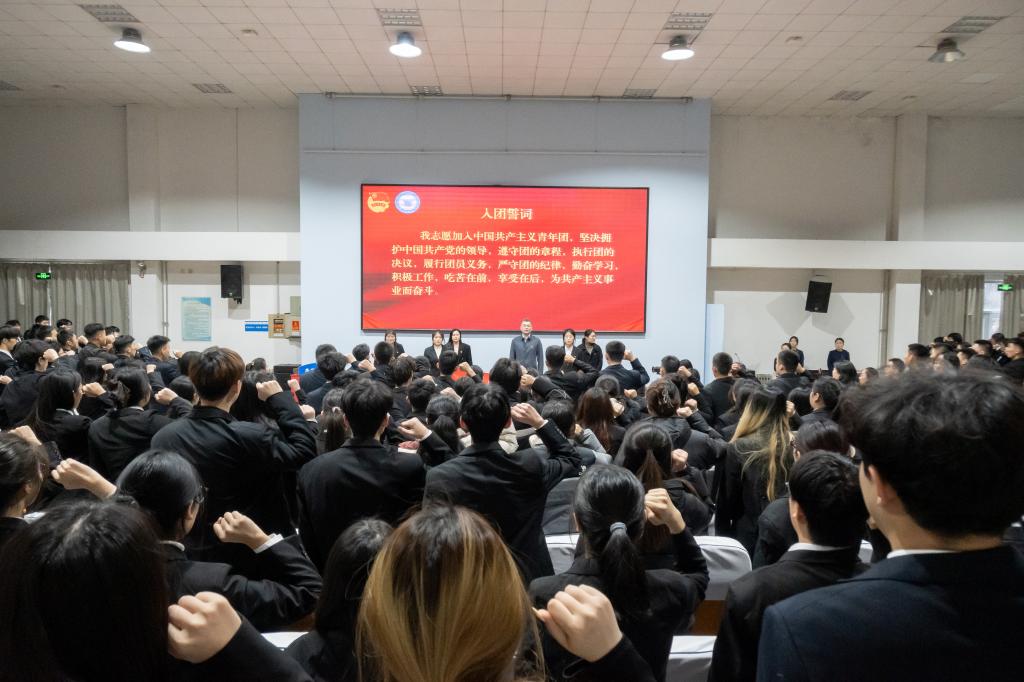 12月26日,潍坊科技学院2025年新发展团员入团仪式在经济管理学院环形报告厅举行。学校团委全体成员、二级学院团总支书记与726名新发展团员齐聚一堂,共同见证这一庄严时刻。