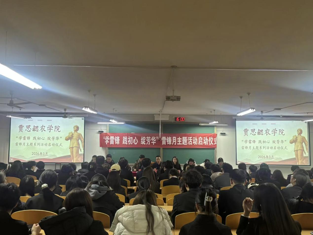 近日,贾思勰农学院在418教室举行“学雷锋,践初心,绽芳华”雷锋月主题系列活动启动仪式。学院党委书记郭振、团总支书记高淋淋、学生科科长李登昊及全体辅导员、志愿者代表共同参加仪式,仪式由辅导员逄淑晴主持。