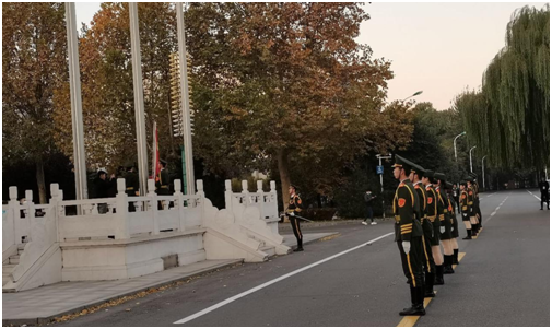 11月9日6点30分,机电技术学院在孔子广场举行“向国旗敬礼,青春致敬祖国,争做新时代文明大学生”升国旗活动。伴随着激昂的《义勇军进行曲》,所有师生庄严肃立,一同高唱国歌,在初升的朝阳辉映下,五星红旗冉冉升起。
