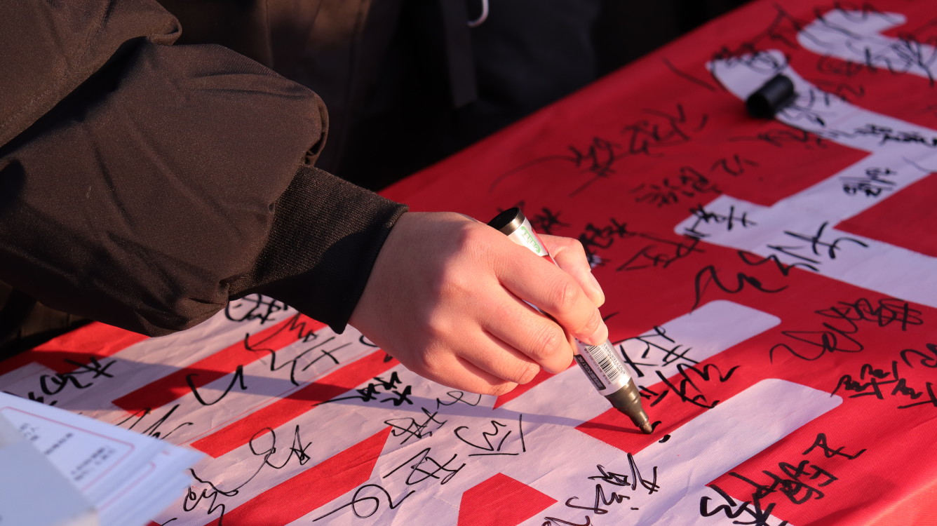 举办签字仪式。12月4日,商务技术学院举办了宪法签字仪式。本次宪法签字仪式,以“让宪法走进生活”为主题,通过普及宪法知识、解答疑惑、宣誓等活动让同学们真正了解宪法,最后在宣传横幅上写下自己的名字,这是一个神圣的时刻,他们签下的不仅仅是自己的名字,更是一份承诺,一份对宪法的敬畏和尊重之情。同学们的名字签满了横幅,他们承诺会遵守宪法,维护宪法,真正让宪法走进生活。另外,法律专业学生还制作了普法宣传页进行现场分发,让同学们更加全面深刻的了解宪法法律知识,为全面贯彻实施宪法提供了坚实的思想基础。